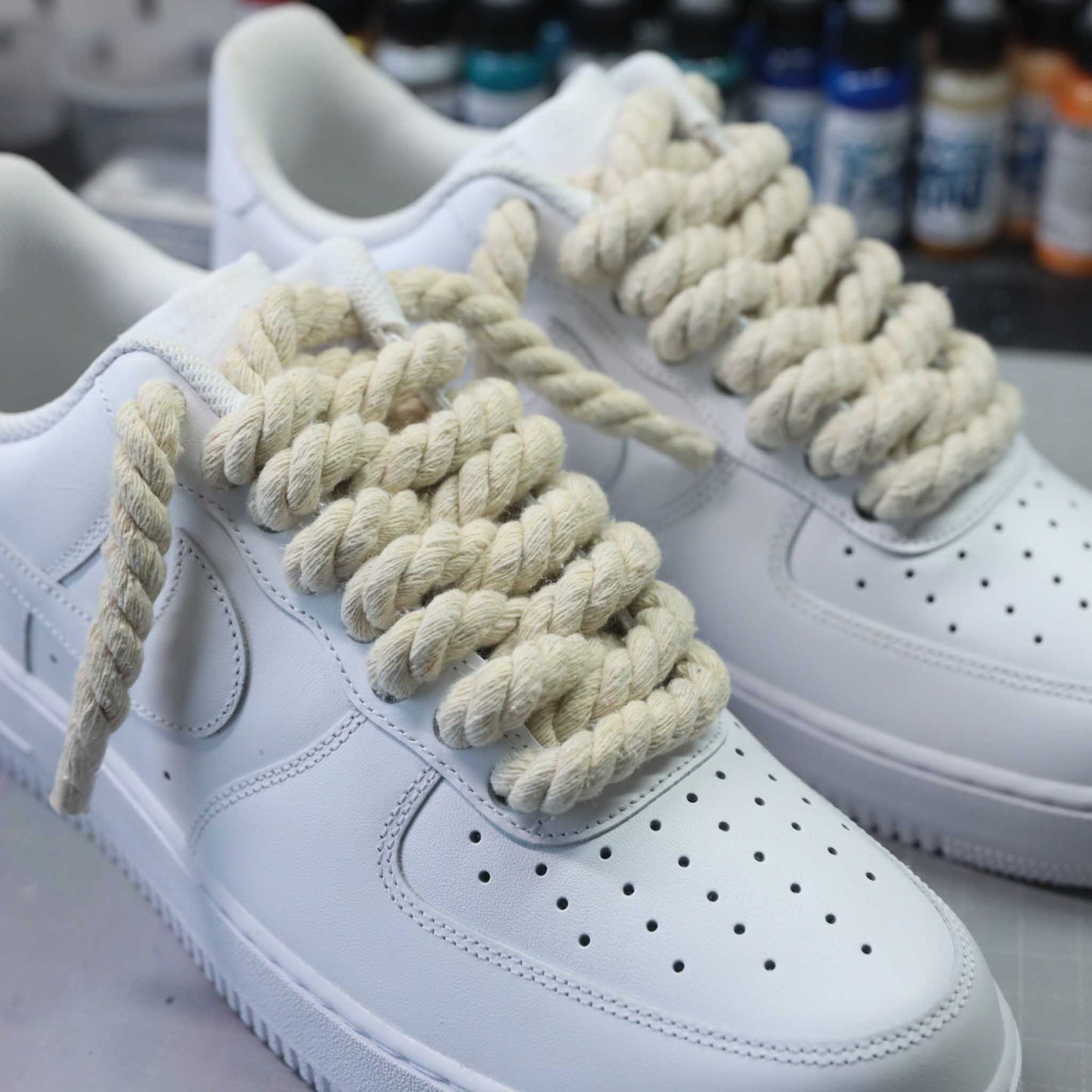Sneakers Nike Air Force 1 blanches avec custom rope laces beige